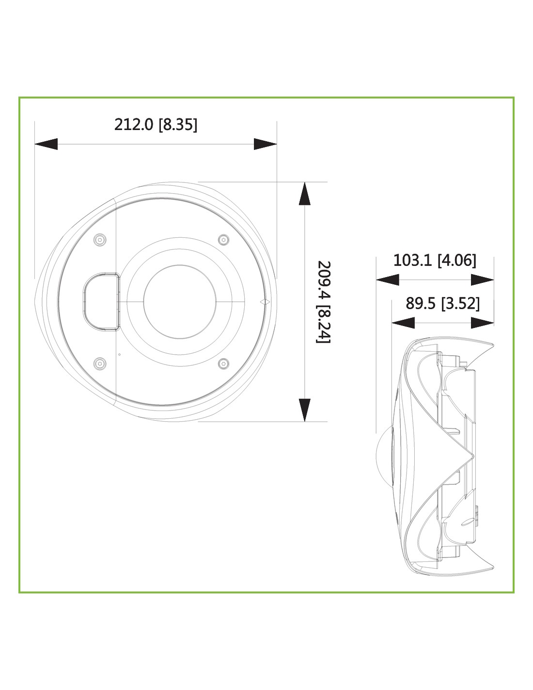 - Lens viewing angle, vertical: 180°