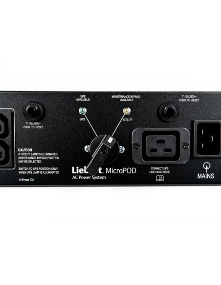 Vertiv 2U MicroPod External maintenance Bypass. Capacidad del rack: 2U, Color del producto: Negro. Cantidad de salidas AC: 19 salidas AC. Capaciad de carga: 2 VA