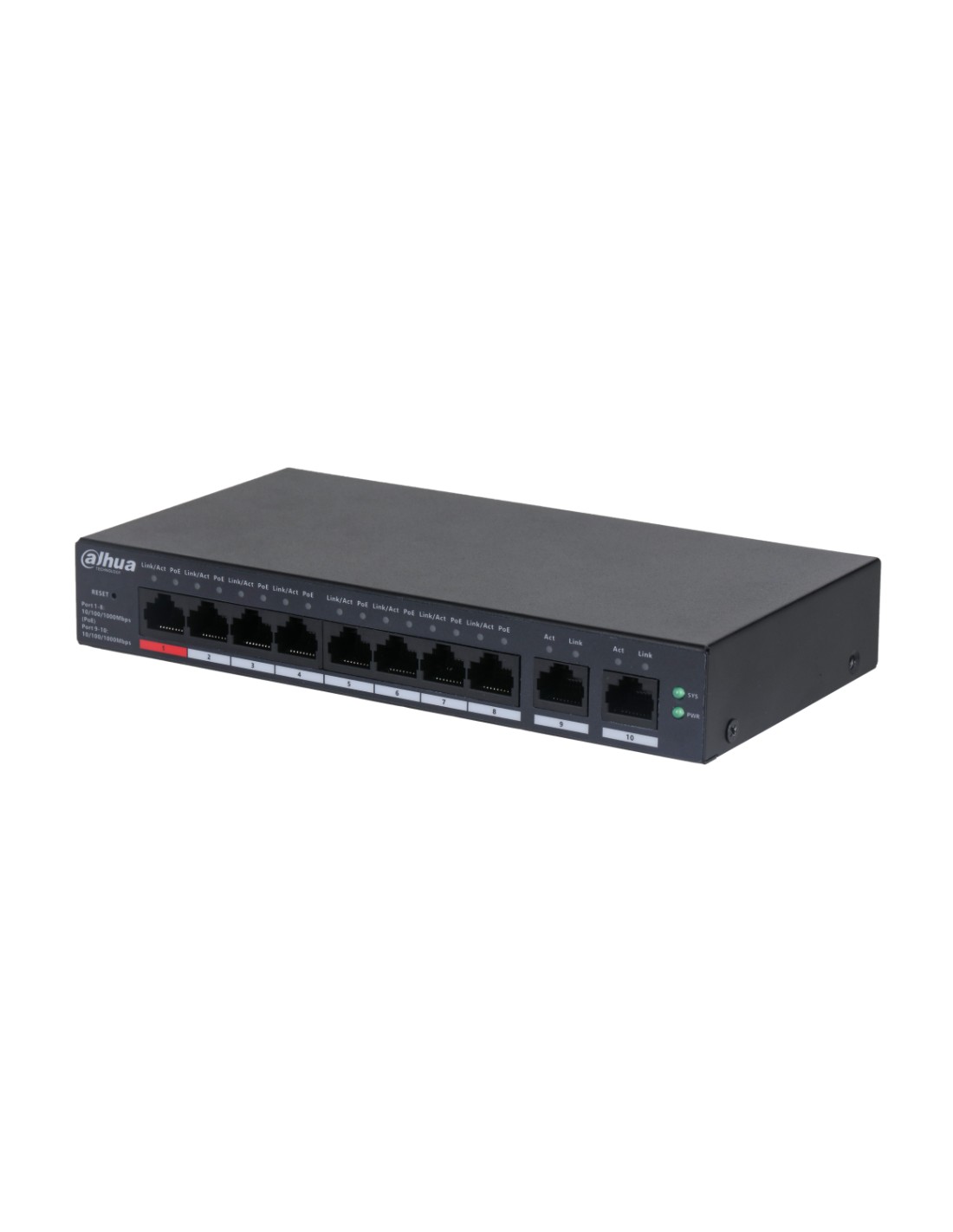 - Switch PoE capa 2. - Soporta estándar IEEE802.3af, IEEE802.3at, Hi-PoE, IEEE802.3bt. - Cumple con IEEE802.3, IEEE802.3u, IEEE802.3x, IEEE802.3ab. - PoE Watchdog, monitorea en tiempo real el estado del dispositivo. - 1 botón de reinicio. - Puertos 1-8: 8xRJ45 10/100/1000Mbps (PoE). - Puertos 9-10: 2xRJ45 10/100/1000Mbps (Uplink). - Puerto 1 ?90W, Puertos 2-8 ?30W, total ?110W. - BT 90W (Puerto rojo) => Los puertos rojos son compatibles con losestándares IEEE802.3af, IEEE802.3at, IEEE802.3bt y HiPoE, con un consumomáximo de potencia de salida de 90W por puerto. Adecuados para alimentardispositivos de alta potencia. - Consumo de energÃa: En reposo: 6W / Carga completa: 110W. - Temperatura de trabajo: -10°C ~ +55°C. - Cloud Management: Gestión en la nube a través de la aplicación DoLynk Care. - Dimensiones y peso: 190x106x30mm / 0.55Kg.