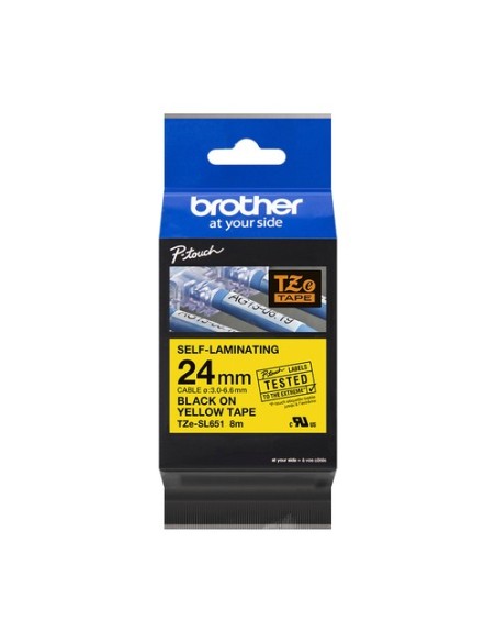 Brother TZe-SL651. Compatibilidad: PT-D800W PT-E550WVP PT-P900W PT-P950NW, Colores de impresión: Negro, Color del producto: Amarillo. Ancho de listón: 2,4 cm, Longitud de listón: 8 m. Tipo de embalaje: Ampolla, Cantidad por paquete: 1 pieza(s)