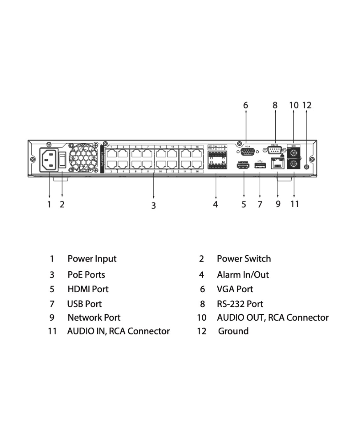 - Video input channels: 16 channels