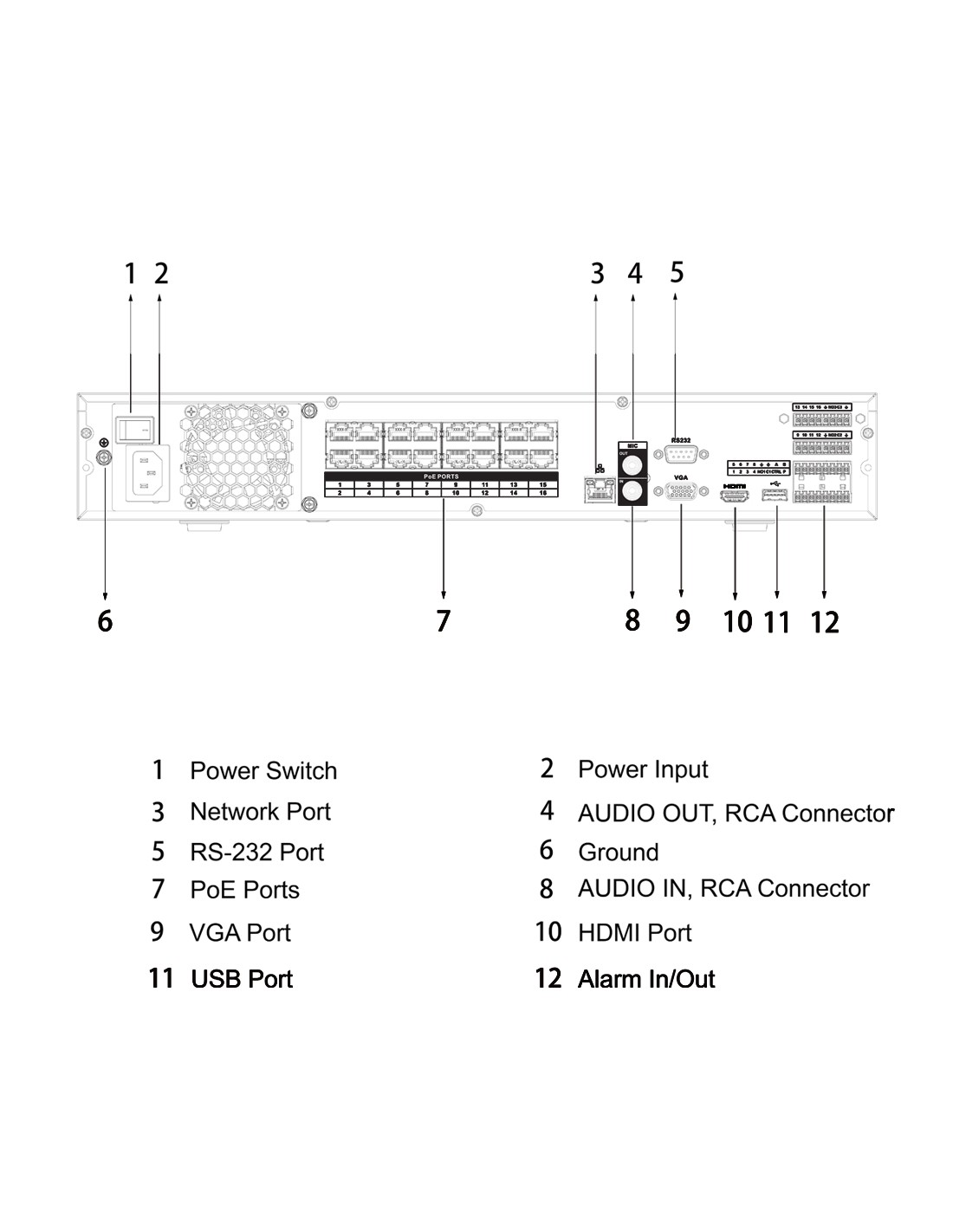 Dahua Technology NVR4416-16P-EI. Canales de entrada de vídeo: 16 canales, Máxima resolución: 3840 x 2160 Pixeles, Resoluciones soportadas: 3840 x 2160, 1920 x 1080, 1280 x 1024, 1280 x 720. Interfaz del HDD: SATA. Ethernet LAN, velocidad de transferencia de datos: 10,100,1000 Mbit/s, Protocolos de red compatibles: HTTP; HTTPS; TCP/IP; IPv4/IPv6; UPnP; SNMP; UDP; SMTP; NTP; DHCP; DNS; IP Filter; PPPoE; DDNS;.... Capacidad del rack: 1.5U, Color del producto: Negro, Certificación: FCC: 47 CFR FCC Part15, SubpartB, Class A CE-EMC: EN 55032: 2015+A1: 2020; EN IEC 61000-3-2:.... Consumo energético: 10 W, Voltaje de entrada AC: 100 -240 V, Frecuencia de entrada AC: 50 - 60 Hz