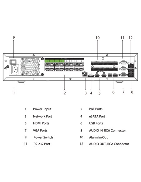 Dahua Technology WizSense DHI-NVR5832-16P-EI. Canales de entrada de vídeo: 32 canales. Interfaz del HDD: SATA, Niveles RAID: 0, 1, 5, 6, 10. Ethernet LAN, velocidad de transferencia de datos: 10,1000,100 Mbit/s. Color del producto: Negro. Voltaje de entrada AC: 100 - 240 V, Frecuencia de entrada AC: 50-60 Hz, Potencia por puerto de alimentación a través de Ethernet (PoE): 25,5 W
