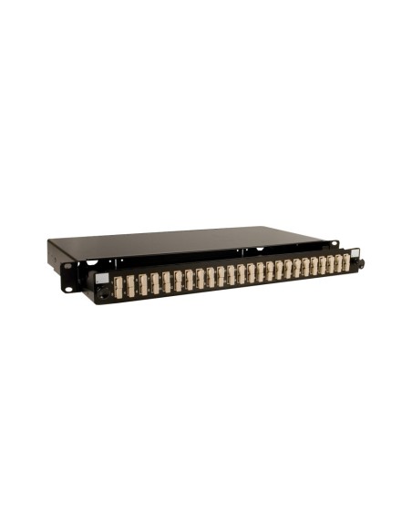 Bandeja extraíble 19 para terminación de fibra óptica innovadora y robusta. Este panel ha sido diseñado para aceptar hasta 48 fibras alojadas dentro de un espacio de 1U.