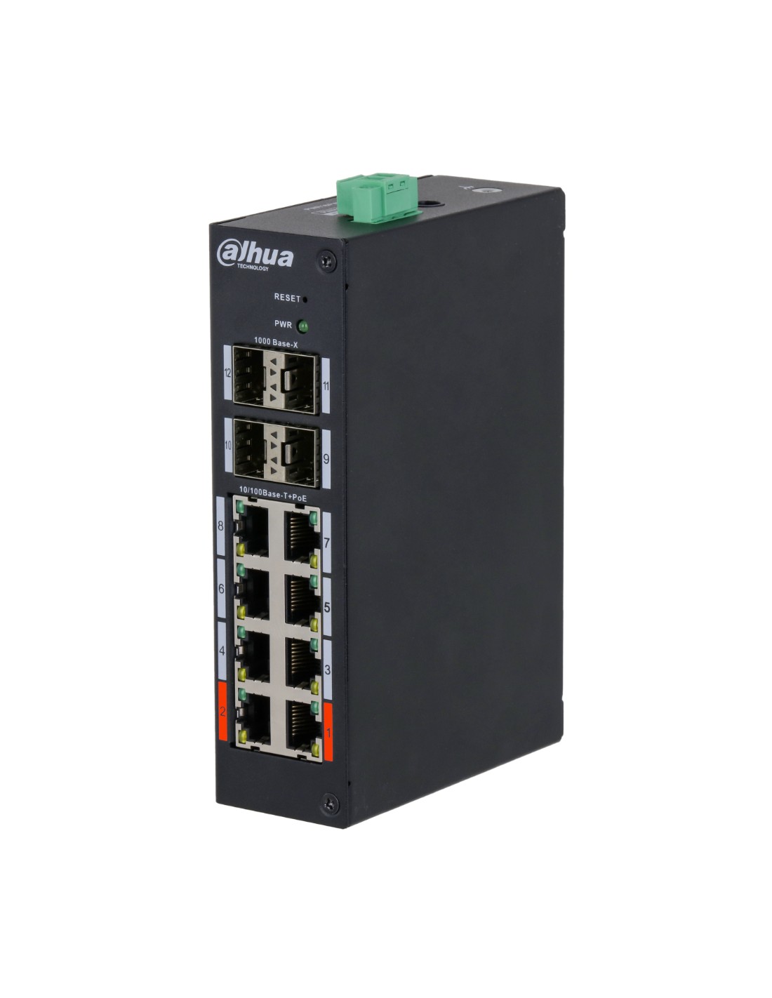 Switch Hardened PoE 8 puertos 10/100 +4SFP Gigabit 120W Gestionable Layer2 [HS4412-8ET-120] Switch Hardened PoE 8 puertos 10/100 +4SFP Gigabit 120W Gestionable Layer2 - Switch Hardened PoE capa 2, de 8 puertos.- Soporta estándar IEEE802.3af, IEEE802.3at, Hi-PoE, IEEE802.3bt.- Cumple con IEEE802.3, IEEE802.3u, IEEE802.3x, IEEE802.3ab/az.- PoE Watchdog, monitorea en tiempo real el estado del dispositivo.- Puertos 1-8: 8xRJ45 10/100Mbps (PoE).- Puertos 9-12: 4xSFP 1000Mbps (Uplink).- Puertos 1-2 ?90W, Puertos 3-8 ?30W, total ?120W.- BT 90W (Puerto rojo) => Los puertos rojos son compatibles con los estándares IEEE802.3af, IEEE802.3at, IEEE802.3bt y HiPoE, con un consumo máximo de potencia de salida de 90W por puerto. Adecuados para alimentar dispositivos de alta potencia.- PoE Extendido (250m) NO compatible con las Series IPC1 e IPC2 de DAHUA. Consultar para otros fabricantes.- Consumo de energía: En reposo: 6W / Carga completa: 120W.- Temperatura de trabajo: -30°C ~ +65°C.- Dimensiones y peso: 152.9x110.4x42mm / 1,00Kg.*Alimentador incluido. https://www.ibdglobal.com/shop/hs4412-8et-120-switch-hardened-poe-8-puertos-10-100-4sfp-gigabit-120w-gestionable-layer2-19391 https://www.ibdglobal.com/web/image/product.template/19391/image_1920?unique=7dc047a SKU: HS4412-8ET-120 Dahua This combination does not exist. Add to compare ??Términos y condiciones?? Garantía de devolución de 30 días Envío: 2-3 días laborales Product downloads Technical Sheet HS4412-8ET-120 - Ficha Técnica Dahua HS4412-8ET-120 - Certificado CE