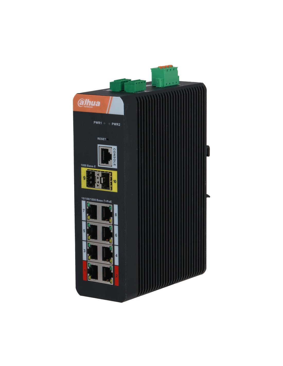 Switch PoE 2.0 Industrial 8 puertos Gigabit + 2SFP Uplink Gigabit 120W Gestionable Layer2 [IS4210-8GT-120] Switch PoE 2.0 Industrial 8 puertos Gigabit + 2SFP Uplink Gigabit 120W Gestionable Layer2 - PoE 2.0 (puerto rojo) => PoE de hasta 250m para alimentar cámaras con un consumo máximo de 90W. Transmisión PoE de 8 hilos.- PoE Extendido (250m) NO compatible con las Series IPC1 e IPC2 de DAHUA. Consultar para otros fabricantes.- PoE Watchdog.- Switch PoE 2.0 Industrial, capa 2, de 8 puertos.- Soporta estándar IEEE802.3af, IEEE802.3at, Hi-PoE, IEEE802.3bt.- Cumple con IEEE802.3, IEEE802.3u, IEEE802.3x, IEEE802.3ab, IEEE 802.3z, IEEE 802.3ad.- Puertos 1-8: 8xRJ45 10/100/1000Mbps (PoE).- Puertos 9-10: 2xSFP 1000Mbps (Uplink).- 1 puerto Consola.- Puertos 1-2 ?90W, puertos 3-8 ?30W, total ?120W.- Admite STP, RSTP y ERPS.- Consumo de energía: En reposo: 9W / Carga completa: 120W.- Temperatura de trabajo: -40°C ~ +75°C.- Dimensiones y peso: 125.4mmx53.5mmx175mm / 1.25Kg.*Alimentador NO incluido.*Requiere Fuente de Alimentación NDR-75-48 o NDR-120-48. https://www.ibdglobal.com/shop/is4210-8gt-120-switch-poe-2-0-industrial-8-puertos-gigabit-2sfp-uplink-gigabit-120w-gestionable-layer2-19112 https://www.ibdglobal.com/web/image/product.template/19112/image_1920?unique=23a5251 SKU: IS4210-8GT-120 Dahua This combination does not exist. Add to compare ??Términos y condiciones?? Garantía de devolución de 30 días Envío: 2-3 días laborales Product downloads Technical Sheet IS4210-8GT-120 - Ficha Técnica Dahua IS4xxx-xxx-xxx - Certificado CE