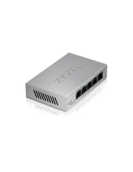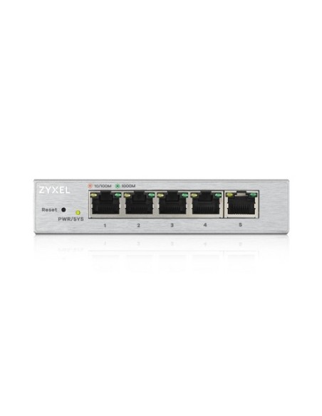 Zyxel GS1200-5. Tipo de interruptor: Gestionado. Puertos tipo básico de conmutación RJ-45 Ethernet: Gigabit Ethernet (10/100/1000), Cantidad de puertos básicos de conmutación RJ-45 Ethernet: 5. Tabla de direcciones MAC: 2000 entradas, Capacidad de conmutación: 10 Gbit/s. Estándares de red: IEEE 802.1Q,IEEE 802.1p,IEEE 802.3ab,IEEE 802.3az,IEEE 802.3u,IEEE 802.3x,IEEE 802.3z. Voltaje de entrada DC: 5 V. Conector eléctrico: Toma de entrada de CC