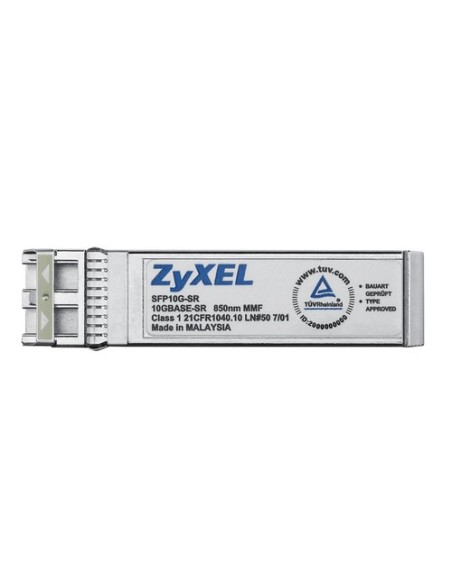 Zyxel SFP10G-SR. Tipo de transceptor SFP: Fibra óptica, Rango máximo de transferencia de datos: 10000 Mbit/s, Tipo de interfaz: SFP+. Ancho: 14,8 mm, Profundidad: 56,5 mm, Altura: 11,8 mm. Número de productos incluidos: 1 pieza(s)
