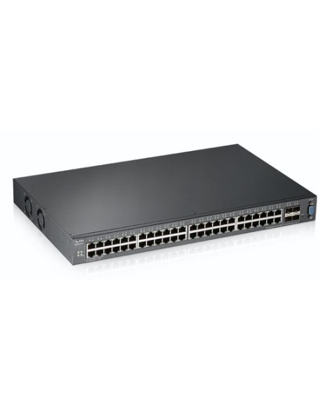 Zyxel XGS2210-52. Tipo de interruptor: Gestionado, Capa del interruptor: L2. Puertos tipo básico de conmutación RJ-45 Ethernet: Gigabit Ethernet (10/100/1000), Cantidad de puertos básicos de conmutación RJ-45 Ethernet: 48. Tabla de direcciones MAC: 16000 entradas, Capacidad de conmutación: 176 Gbit/s. Estándares de red: IEEE 802.1D,IEEE 802.1Q,IEEE 802.1ab,IEEE 802.1p,IEEE 802.1s,IEEE 802.1w,IEEE 802.1x,IEEE.... Montaje en rack, Factor de forma: 1U