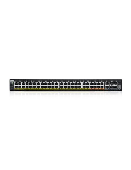 Zyxel XGS2220-54HP. Tipo de interruptor: Gestionado, Capa del interruptor: L3. Puertos tipo básico de conmutación RJ-45 Ethernet: Gigabit Ethernet (10/100/1000), Cantidad de puertos básicos de conmutación RJ-45 Ethernet: 48, Número de módulos SFP+ instalados: 4. Tabla de direcciones MAC: 32000 entradas, Capacidad de conmutación: 216 Gbit/s. Estándares de red: IEEE 802.3ab, IEEE 802.3bt, IEEE 802.1ab, IEEE 802.3ad, IEEE 802.3ae, IEEE 802.3af, IEEE 802.3an,.... Energía sobre Ethernet (PoE). Montaje en rack