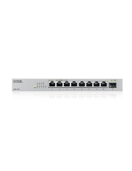 Zyxel XMG-108. Tipo de interruptor: No administrado. Puertos tipo básico de conmutación RJ-45 Ethernet: 2.5G Ethernet (100/1000/2500), Cantidad de puertos básicos de conmutación RJ-45 Ethernet: 8. Tabla de direcciones MAC: 4000 entradas, Capacidad de conmutación: 60 Gbit/s. Estándares de red: IEEE 802.1p, IEEE 802.3ab, IEEE 802.3ae, IEEE 802.3az, IEEE 802.3bz, IEEE 802.3u, IEEE 802.3x,.... Montaje de pared