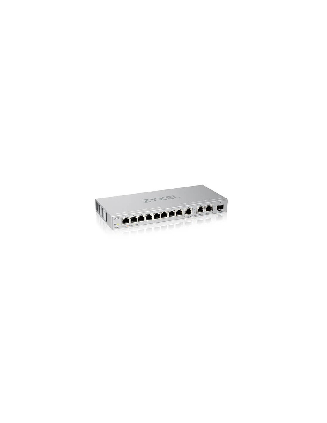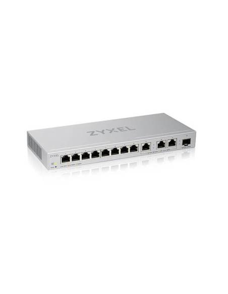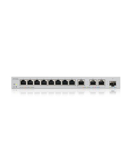 Zyxel XGS1250-12. Tipo de interruptor: Gestionado, Capa del interruptor: L2. Puertos tipo básico de conmutación RJ-45 Ethernet: 10G Ethernet (100/1000/10000), Cantidad de puertos básicos de conmutación RJ-45 Ethernet: 11. Bidireccional completo (Full duplex). Tabla de direcciones MAC: 16000 entradas, Capacidad de conmutación: 96 Gbit/s. Estándares de red: IEEE 802.3, IEEE 802.3ab, IEEE 802.3ae, IEEE 802.3an, IEEE 802.3az, IEEE 802.3u, IEEE 802.3x. Conector eléctrico: Toma de entrada de CC. Montaje de pared